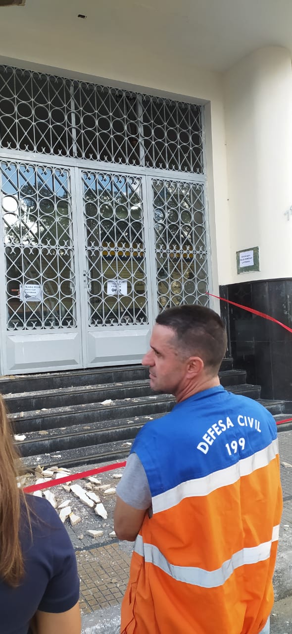 Parte da estrutura de uma marquise desabou e atingiu um homem em frente a uma agência dos Correios, nesta segunda-feira (10), no Centro de Campina Grande.