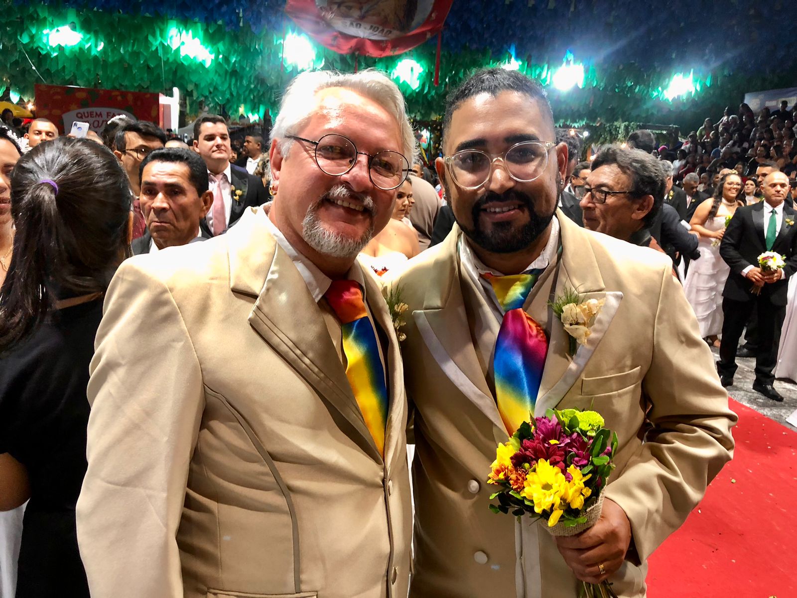 “Antes de tudo, é uma homenagem aos casais gays, trans e travestis que não tiveram a mesma sorte que a gente, que não conseguiram chegar a esse espaço, pois foram tiradas as suas vidas. Então a gente entende que esse ato é um ato revolucionário”, falou Aroldo emocionado.