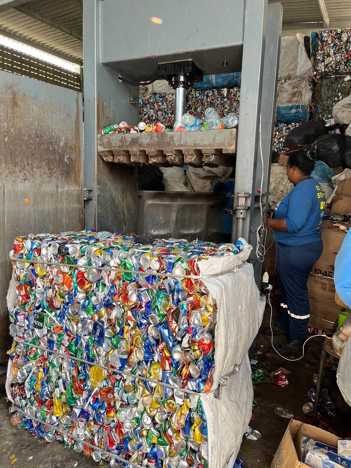 A equipe deste ano contou com 50 pessoas, dez a mais em relação à edição de 2022, que se revezavam em equipes que trabalhavam na coleta e triagem. Depois da seleção, os materiais passam pela prensa, são organizados em fardos e vendidos.