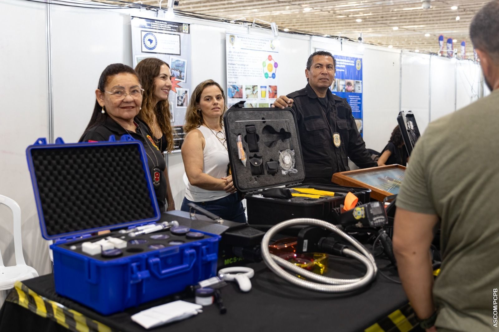 Criminalística: Equipamentos de Local de crime como Scanner 3D, Luz forense, detectores de metais usados para localização de projetis, maleta de coleta papiloscópica em locais de crime, equipamentos de documentoscopia. Peritos Oficiais Criminais e Técnicos em Perícia estarão presentes explicando cada serviço.