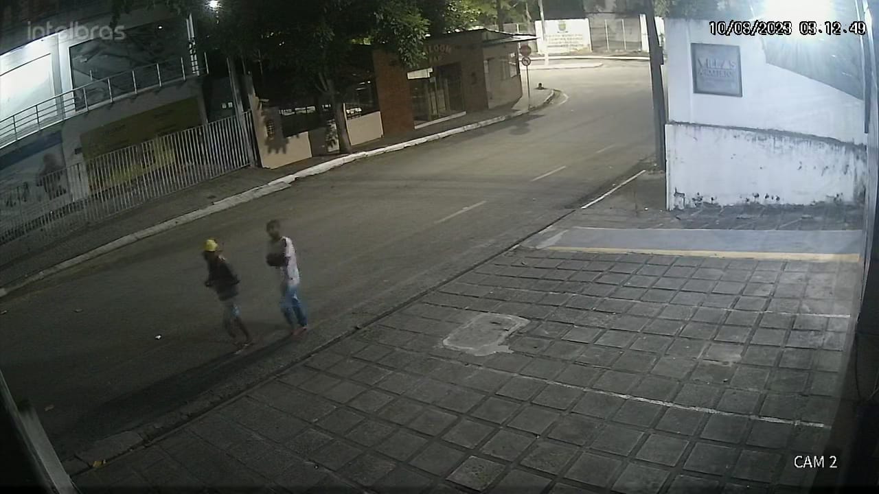 O vídeo mostra que os indivíduos chegam ao local sem qualquer intervenção. Um deles dá apoio para que o outro possa subir e tentar furtar o objeto.