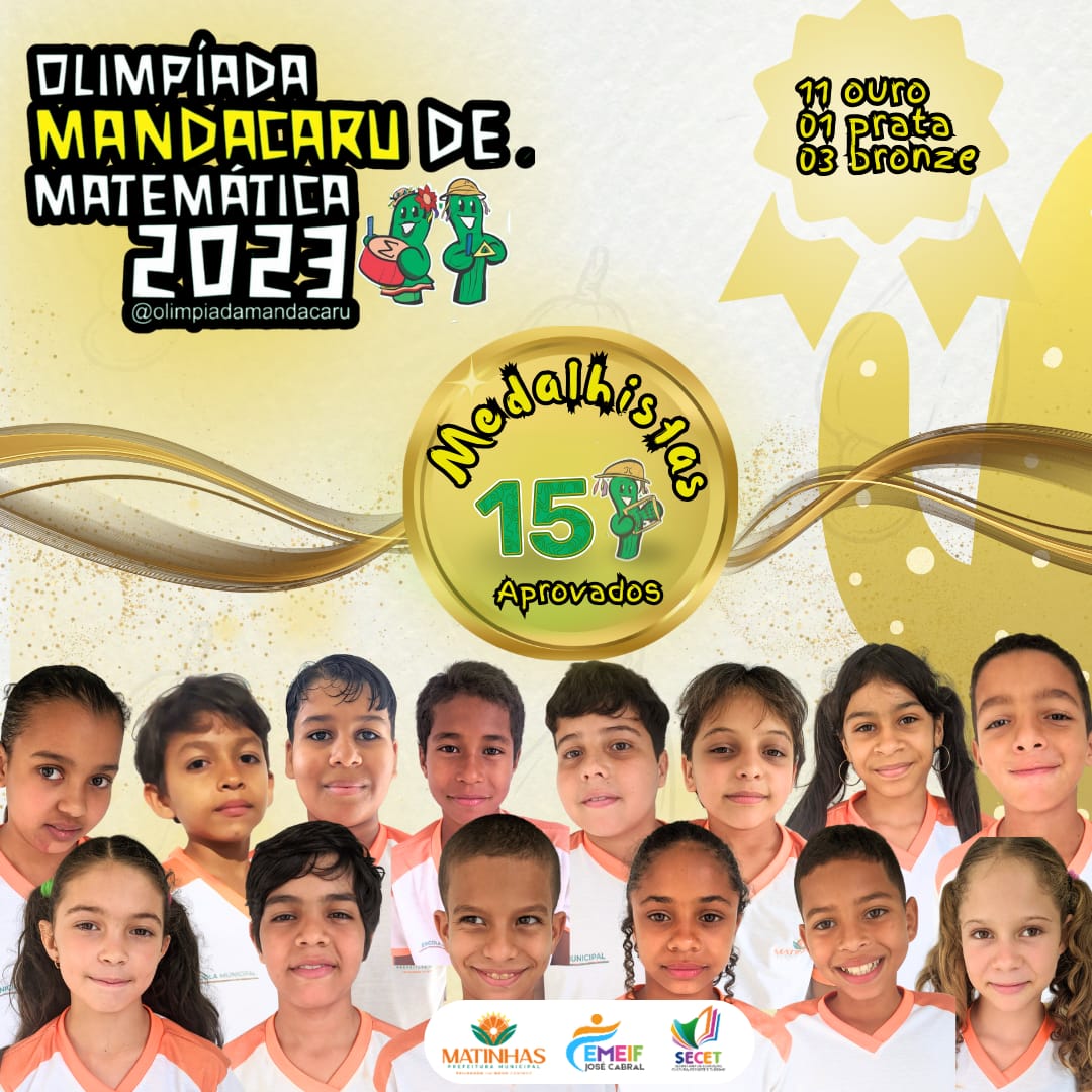 Em um evento de relevância na matemática, a Escola Municipal José Cabral, localizada na zona rural de Matinhas conquistou, no último final de semana, o título de maior medalhista de ouro dentre as escolas públicas participantes da Paraíba.