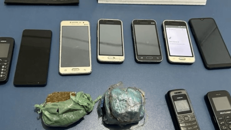 A Polícia Militar apreende nove aparelhos celulares e uma porção de drogas. Os dois acusados foram encaminhados para a Central de Polícia de Campina Grande, para a adoção das medidas cabíveis.
