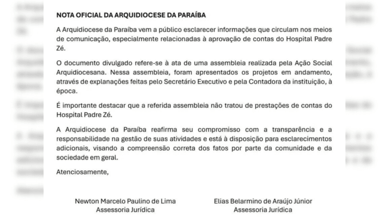 Veja nota da Arquidiocese da Paraíba