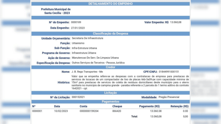 Em contato com a redação do Blog, os moradores relataram que a Prefeitura municipal de Santa Cecília paga o valor de R$ 13 mil reais para que um caminhão compactador leve o lixo da cidade para um aterro sanitário na região de Campina Grande, no Agreste da Paraíba.