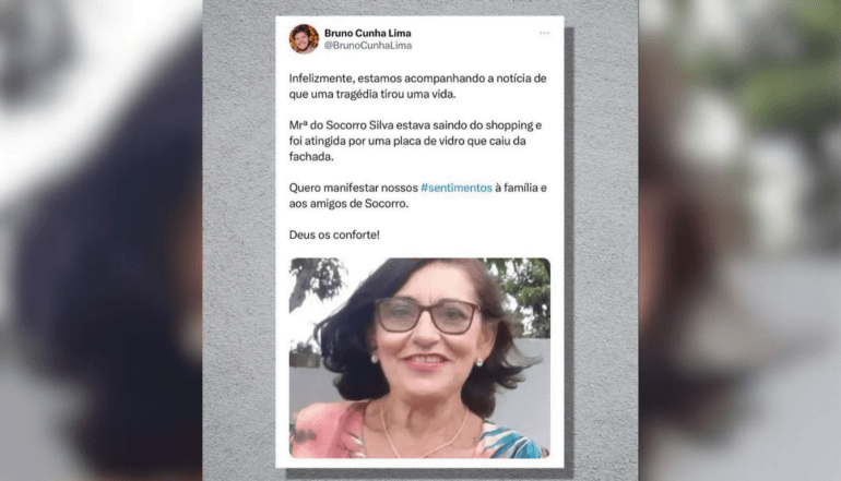 Uma idosa de 64 anos morreu após ser atingida por uma estrutura de vidro que caiu da fachada do Partage Shopping, em Campina Grande, neste domingo (26). A vítima, identificada como Maria do Socorro Silva, era aposentada e residia no bairro do Cruzeiro.