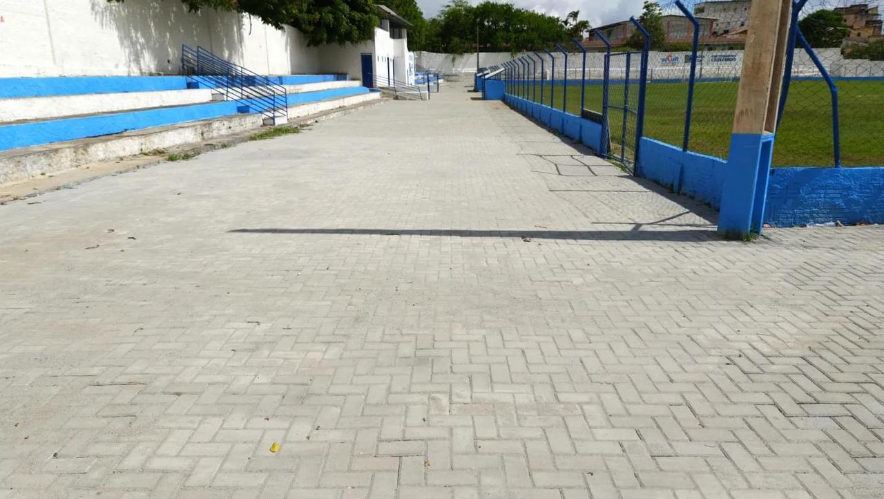 A Prefeitura de Lagoa Seca está realizando a colocação de piso intertravado com tijolo retangular nas imediações do Estádio Municipal Francisco Luiz de Sena – “O Titão”.