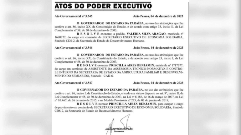 Com a exoneração de Valéria Aragão da Secretaria Executiva de Economia Solidária, assume o cargo Priscilla Benjamin, filha da deputada Sílvia Benjamin.