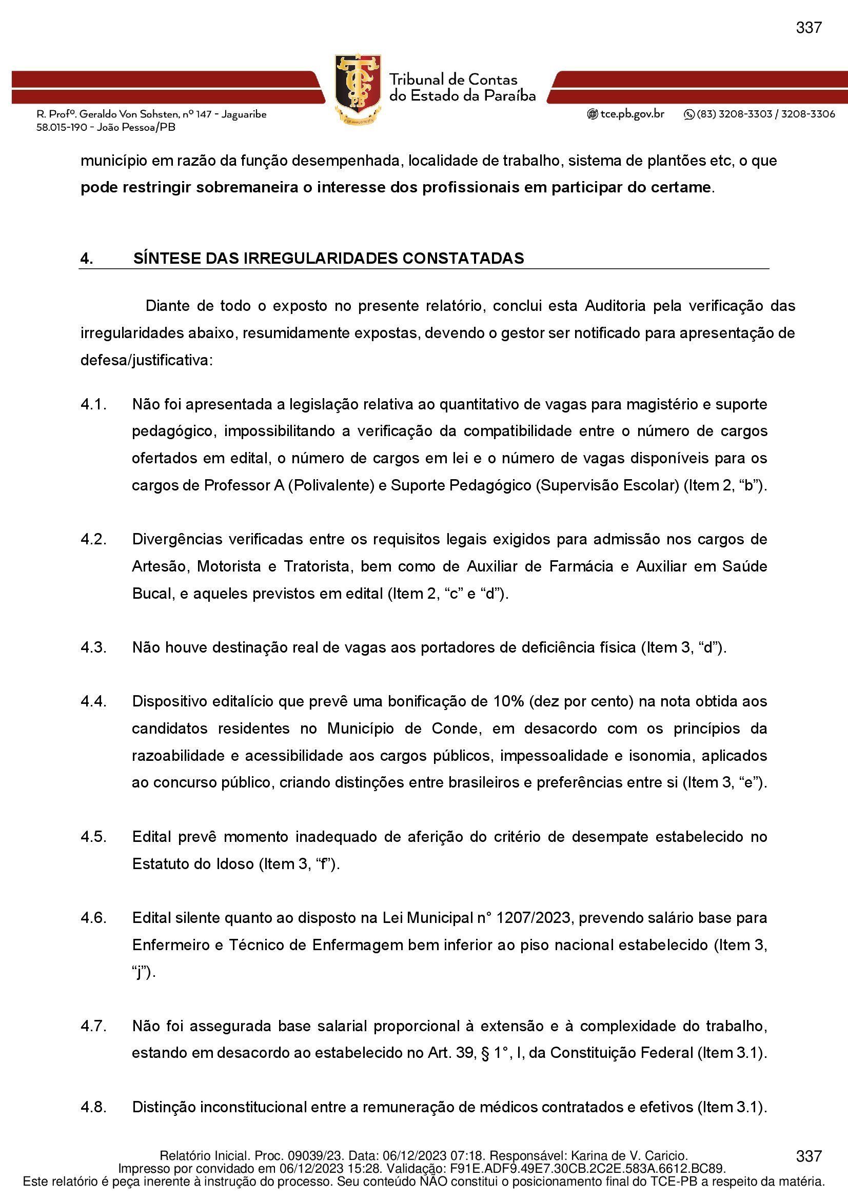Veja trecho apontando as irregularidades.