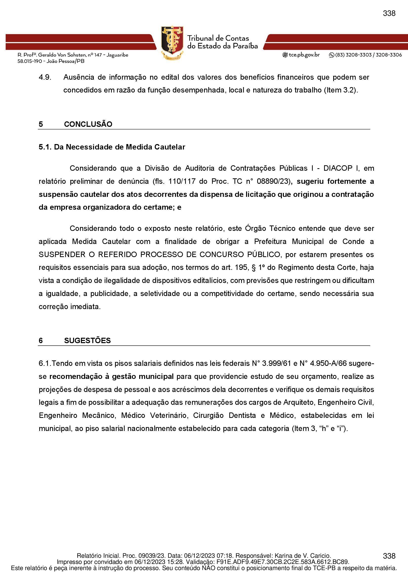 O Tribunal de Contas do Estado (TCE-PB) apontou pelo menos nove irregularidades no contrato firmado entre a Prefeitura de Conde, na Paraíba, e a empresa Consulpam Consultoria, responsável pela organização do concurso público da cidade. O TCE recomenda a suspensão do processo seletivo.
