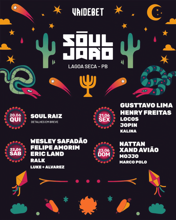 A classificação etária do evento é de 18 anos e em breve, estarão abertas as vendas dos ingressos e a programação da “Soul Raiz”. Todas as novidades são divulgadas pelo instagram oficial do evento: @festasouljoao.