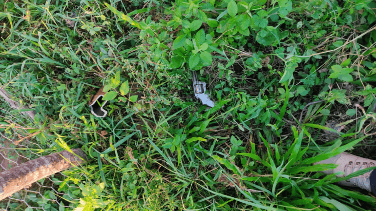 No momento da prisão, o suspeito ainda jogou a arma usada no crime pela janela, mas a equipe de investigadores conseguiu visualizar e apreender o objeto, um revólver calibre .32 com 6 munições intactas do mesmo calibre. O investigado será autuado em flagrante pelo crime de posse ilegal de arma de fogo.