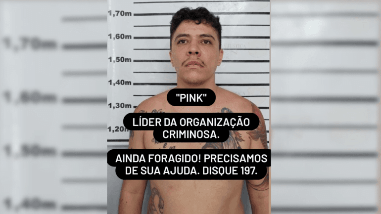O líder da quadrilha foi identificado como ‘Pink’ e segue foragido da polícia. Informações sobre o acusado podem ser encaminhadas para o Disque 197 de forma anônima.