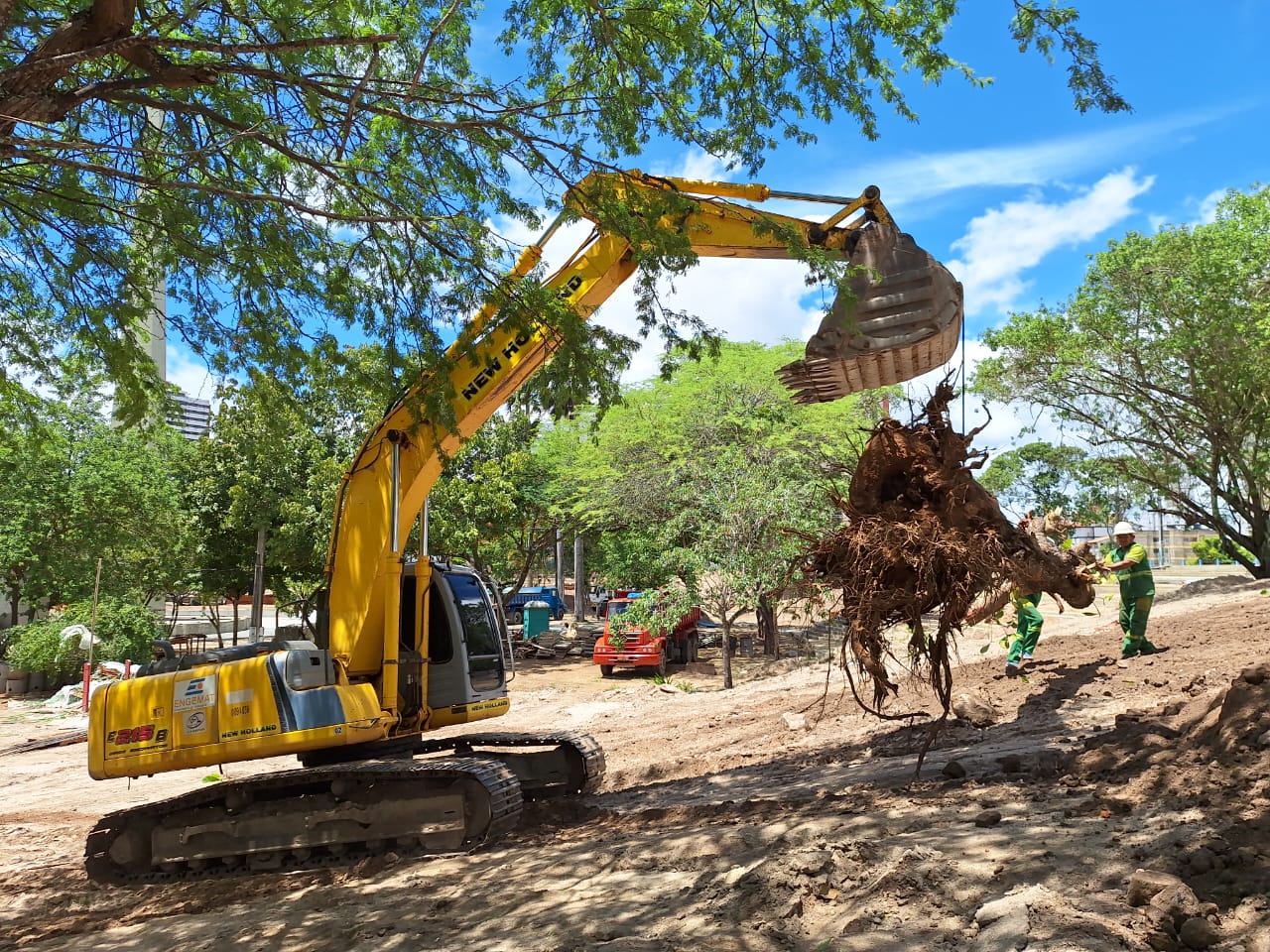 A Prefeitura de Campina Grande, por meio da Secretaria de Serviços Urbanos e Meio Ambiente (Sesuma), realizou na manhã desta quinta-feira, 28, o transplante de algumas árvores, do tipo algaroba, do Parque do Povo, da área que está sendo demolida para o Parque Evaldo Cruz (Açude Novo) que está sendo requalificado. Semana passada algumas palmeiras que estavam na mesma área foram levadas para o Parque Linear Dinamérica, que em breve terá sua etapa concluída para inauguração.
