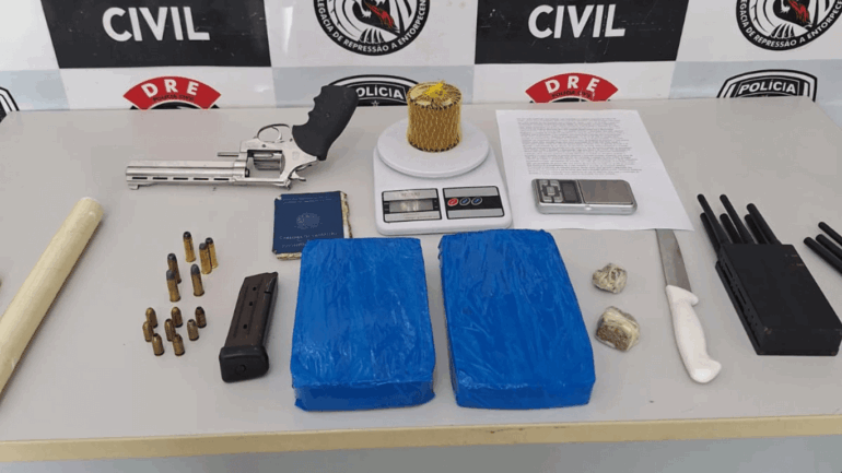 De acordo com o Delegado Jorge Luís Almeida, com o suspeito foi apreendido 2 kg de cocaína e uma arma de fogo. O delegado informou ainda que o preso agia de forma violenta em ações criminosas em favor do tráfico de drogas na região.
