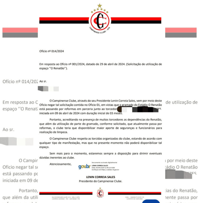 No entanto, a ideia foi vetada pela diretoria do clube Rubro Negro, que através de um documento oficial enviado para nossa equipe pelo presidente Lênin Correia, informou que o evento não poderá ser realizado no Centro de Treinamento, isso porque o gramado do local está passando por manutenções e não poderá receber a presença de torcedores.