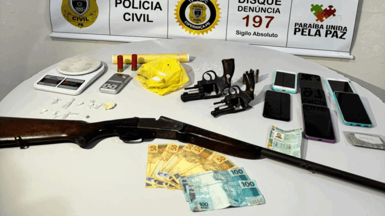 “Outros mandados de prisão estão em aberto e as equipes se encontram em diligência na região. Com a ação, foram apreendidas dois revólveres calibre .38, uma espingarda .32, balanças de precisão, substância semelhante ao Crack e a cocaína, o valor de R$ 500,00 (quinhentos) reais e vários aparelhos telefônicos”, diz nota da Polícia Civil da Paraíba.