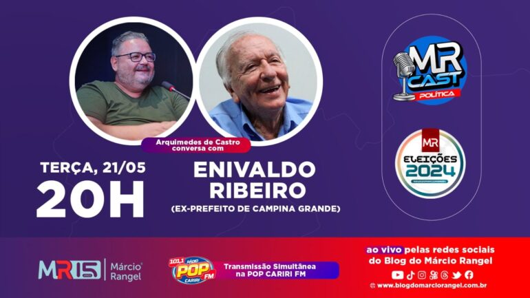 Nesta terça-feira, 21 de maio, às 20h, o #MRCast Política receberá um convidado especial: Enivaldo Ribeiro, ex-prefeito de Campina Grande. O programa, apresentado por Arquimedes de Castro, promete abordar temas importantes da política local e nacional, com destaque para a trajetória de Enivaldo Ribeiro e seus impactos na cidade.