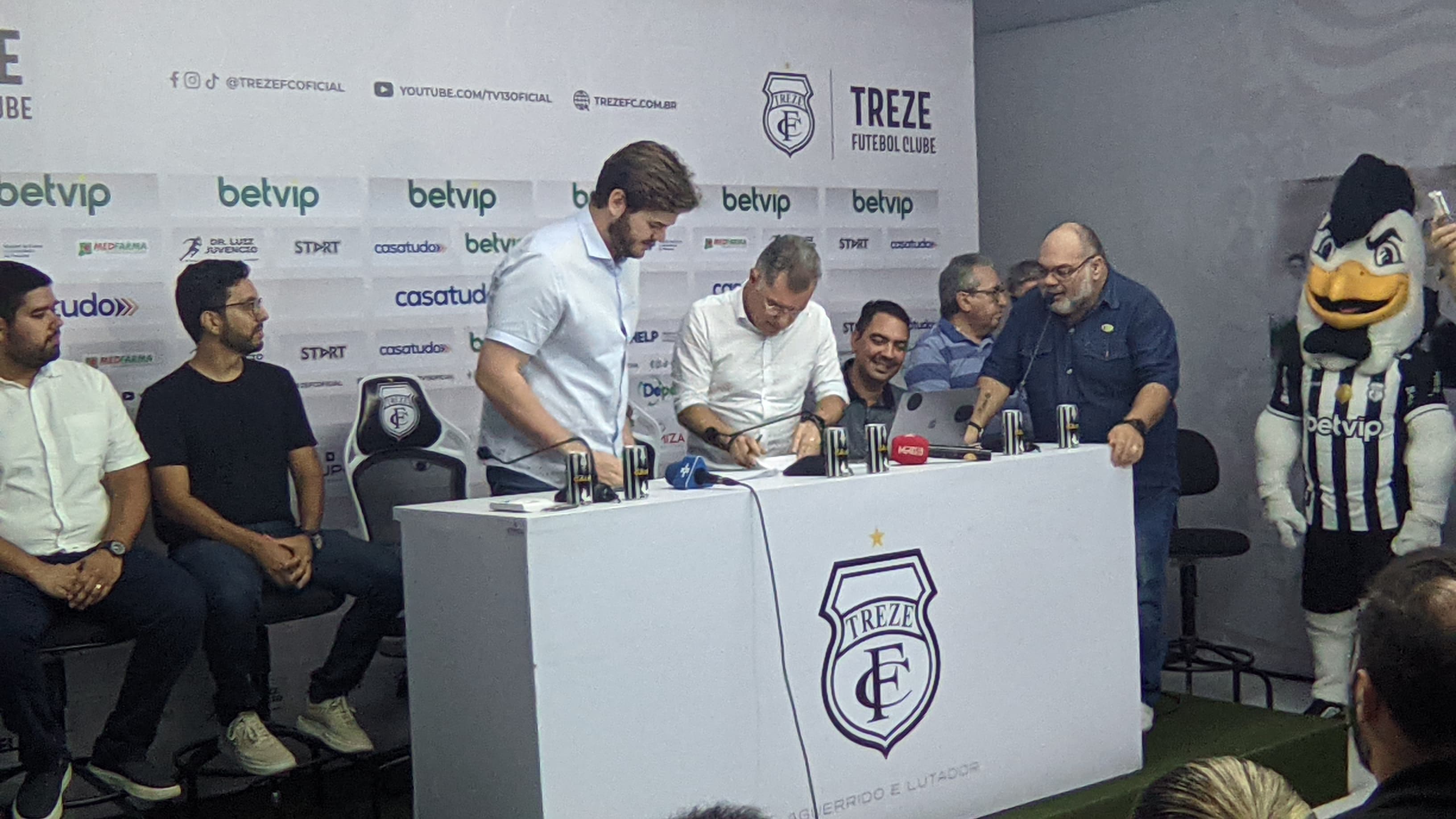 Nesta sexta-feira (5), o prefeito Bruno Cunha Lima assinou a cessão do terreno que será repassado pela Prefeitura de Campina Grande, por 30 anos, para que o Treze construa seu novo Centro de Treinamento.