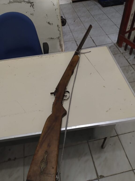 Em seguida, os agentes cumpriram o mandado de prisão contra o suspeito, que foi detido nos fundos da própria residência. Com ele, os agentes apreenderam uma espingarda artesanal. O preso foi levado para a Cidade de Polícia Civil de Campina Grande, onde ficará à disposição da Justiça.