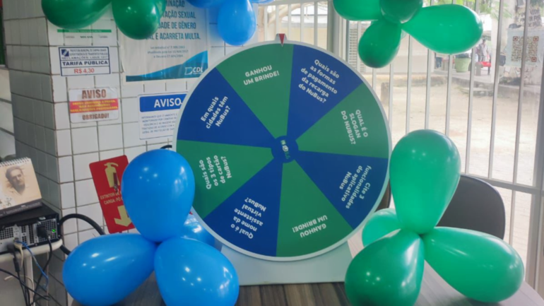 No posto de atendimento do Sitrans e do Nubus no local, estudantes giraram a roleta e responderam a perguntas sobre o serviço, ganhando brindes e se divertindo na companhia de colegas e dos funcionários do sistema de transporte público coletivo de Campina Grande.