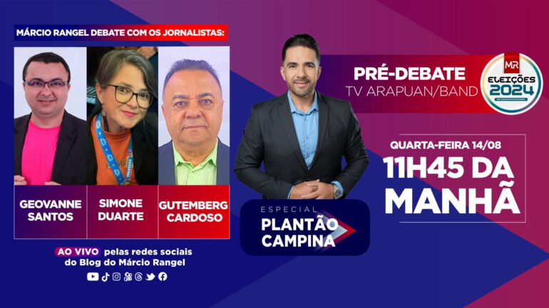 Autorizado de forma exclusiva para retransmitir o debate e todo conteúdo de forma integral em todas as plataformas digitais, o Blog do Márcio Rangel preparou uma programação jornalística especial para o dia de amanhã, com debates, resenhas e entrevistas.
