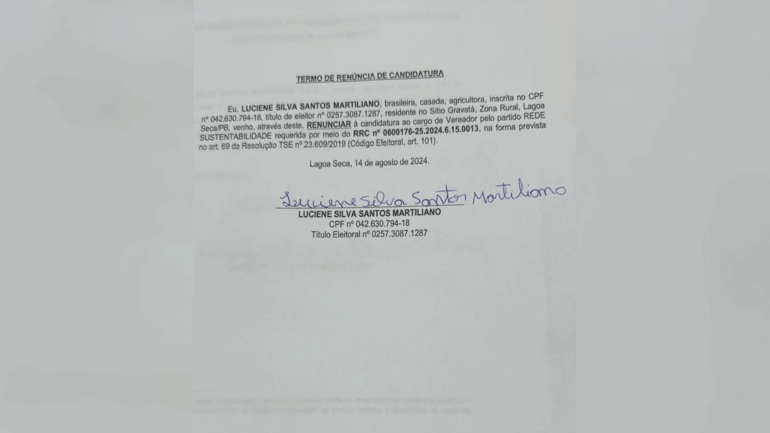 A mais recente é Luciene da Silva Martiliano, liderança da região rural do sítio Gruta Funda. Ela está filiada ao REDE SUSTENTABILIDADE e enviou, ontem à noite, a comunicação de desistência à direção municipal da legenda.