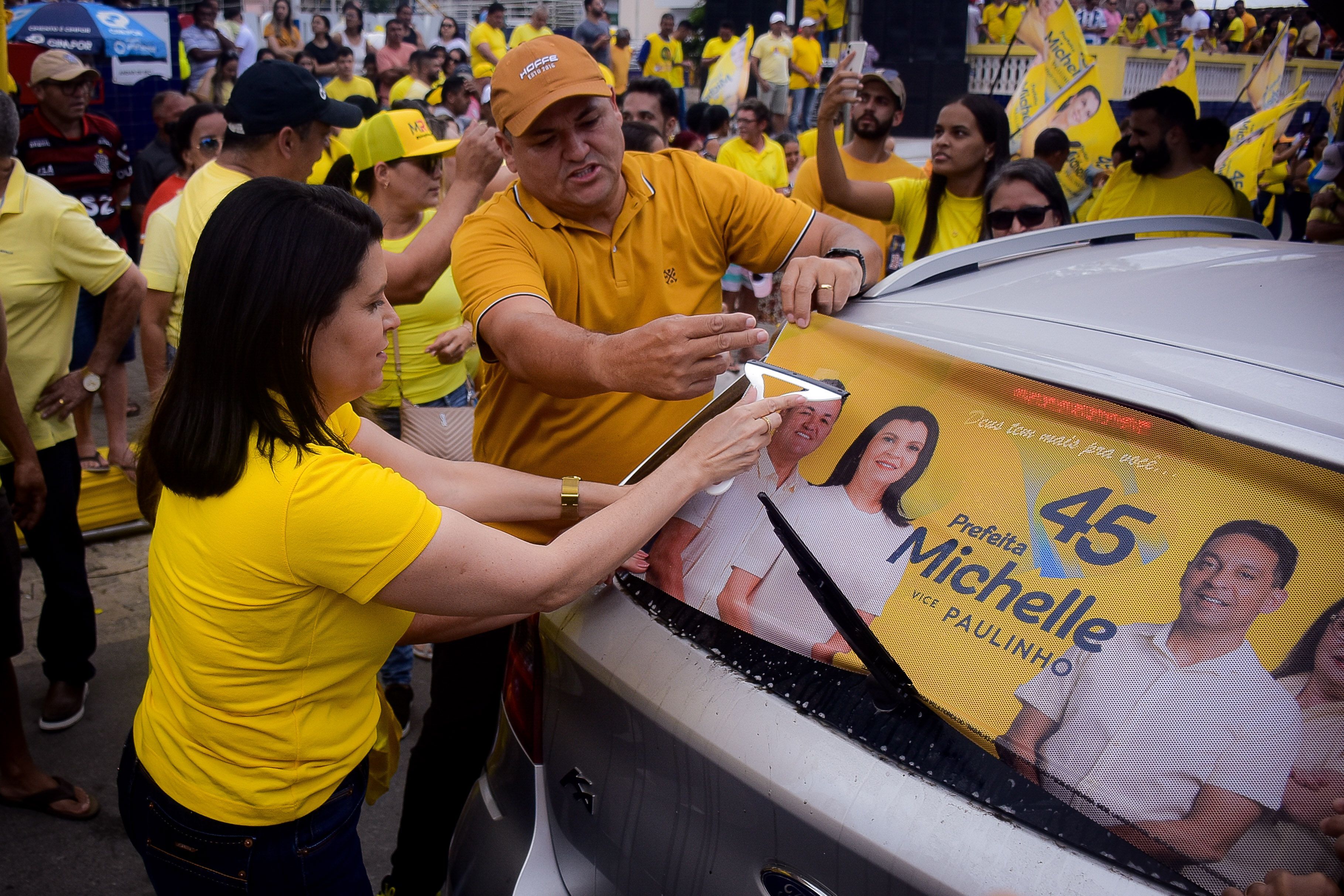 Entre as autoridades presentes estavam a prefeita Dalva Lucena e os deputados Fábio Ramalho (estadual) e Romero Rodrigues (federal), que se uniram à multidão para apoiar Michelle e Paulinho. Os candidatos não só cumprimentaram os presentes e posaram para fotos, mas também participaram ativamente do adesivaço, ajudando a adesivar veículos em um gesto simbólico.