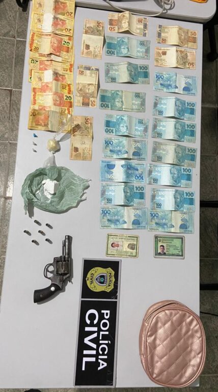 Durante a operação, foram apreendidos cocaína, dinheiro possivelmente ligado ao tráfico e um revólver calibre .32 com numeração raspada.