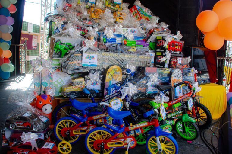 No palco era possível enxergar a grande quantidade de presentes que seriam sorteados e entregues à criançada. As opções variavam desde as bicicletas, bonecas, carrinhos e jogos pedagógicos. Quem não teve a sorte de ser contemplado, não ficou triste porque garantiu a lembrancinha menor preparada para todos quem estavam ali. Os pacotes continham doces e brindes. A secretária de Assistência Social comentou sobre a grandeza do evento e o quanto o momento foi impotente.
