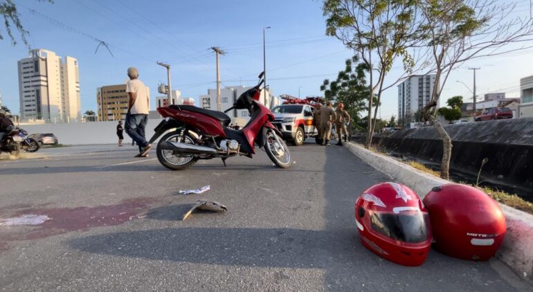 O acidente aconteceu na rua Noujaim Habib, próximo ao Instituto dos Cegos, quando a motorista do carro, que vinha acompanhado de duas crianças, perdeu o controle e colidiu com uma moto.