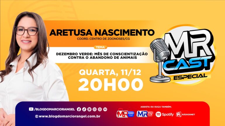 No MRCAST Especial desta quarta-feira (11), o apresentador Tomás Magno recebe a coordenadora do Centro de Zoonoses de Campina Grande, Aretusa Nascimento, para um bate-papo importante sobre o Dezembro Verde, mês de conscientização contra o abandono de animais.