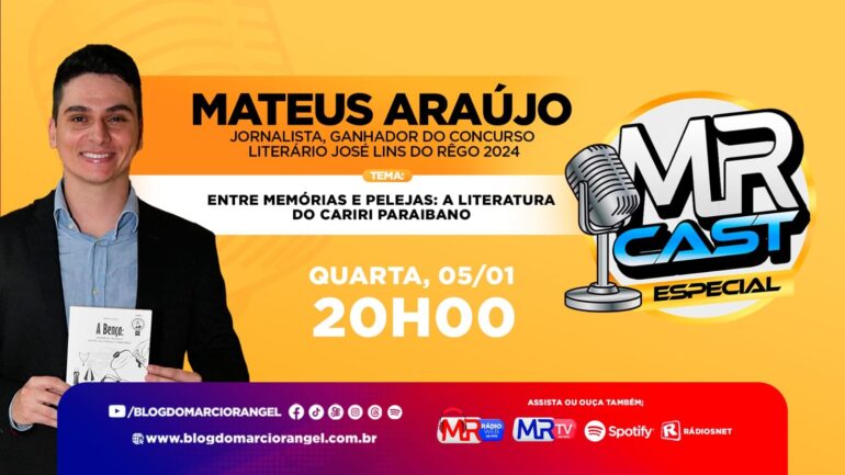 Nesta quarta-feira (04), o jornalista Mateus Araújo é o entrevistado do MRCast Especial. Ele foi o ganhador do Concurso Literário José Lins do Rêgo 2024, na categoria Crônica, promovido pelo Governo do Estado da Paraíba, através da Funesc.