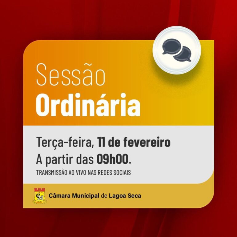 A Câmara de Vereadores de Lagoa Seca, Casa Napoleão Coutinho, realizará nesta terça-feira, 11 de fevereiro, a sessão solene de abertura do ano legislativo. A cerimônia, que estava prevista para a semana passada, foi adiada em respeito ao luto oficial de três dias decretado no município após o falecimento do ex-prefeito Edvardo Herculano de Lima.