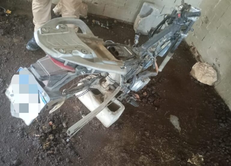 Uma motocicleta Honda Bros 2013 foi encontrada desmontada dentro de um galpão nesta segunda-feira (17), em Campina Grande/PB. A Polícia Militar informou que o veículo foi furtado no bairro Jardim Paulistano, por volta das 22h30 do último sábado (15).