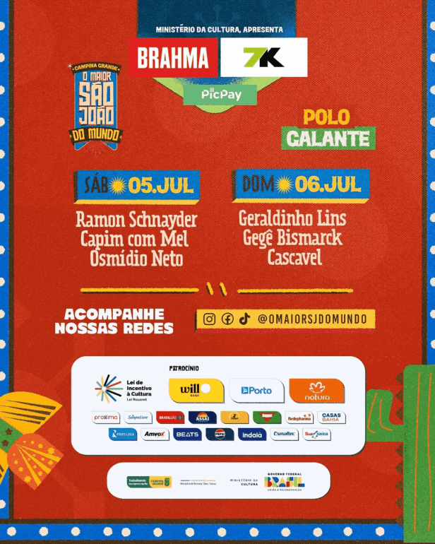Foi divulgada, nesta quarta-feira (2), a programação oficial do São João do distrito de Galante, que acontece na região de Campina Grande/PB.