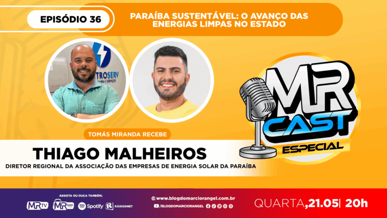Nesta quarta-feira (21), a partir das 20h, o MRCast Especial recebe Thiago Malheiros, engenheiro, empresário e diretor da regional de Campina e Cariri da Associação das Empresas de Energia Solar da Paraíba, para um bate-papo sobre o crescimento das energias limpas no estado da Paraíba.