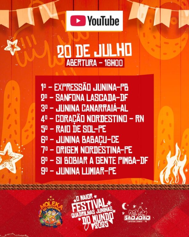 “O festival, já consolidado no calendário junino, referenda Campina Grande como a terra do Maior São João do Mundo — e agora, a Capital das Quadrilhas Juninas do Brasil.”