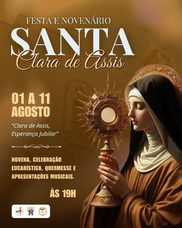 De 1º a 11 de agosto, o Mosteiro Santa Clara promoverá a Festa e Novenário de Santa Clara de Assis, com o tema “Clara de Assis, Esperança Jubilar”. O evento celebra não apenas a memória da santa padroeira da televisão e da vida contemplativa, mas também o início das comemorações pelos 75 anos do Mosteiro em Campina Grande, fundado em 31 de dezembro de 1950.