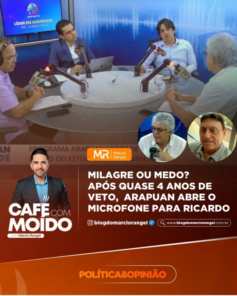 Pois bem. Eis que, nesta segunda-feira, 8 de setembro de 2025, o jogo virou. Ricardo Coutinho, agora em outro tabuleiro político — com a pré-candidatura a deputado federal anunciada, o racha de Cícero Lucena com os Ribeiro, o realinhamento com o PT e a possibilidade de Cícero disputar o Governo — foi autorizado a falar no Arapuan Verdade, o programa de rede retransmitido por todas as emissoras do grupo. E quem estava lá? Luiz Torres, Clilson Júnior e Bruno Pereira, abrindo espaço ao vivo para o homem que até ontem era persona non grata.
