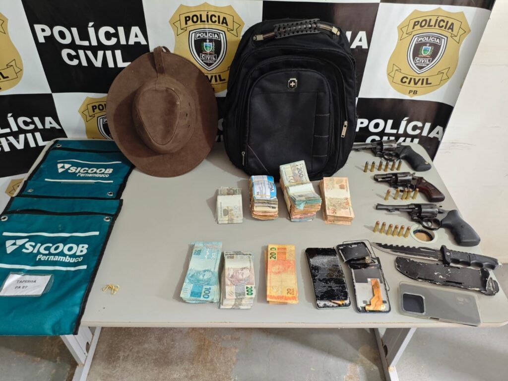 Dois indivíduos foram presos em flagrante na manhã desta segunda-feira (13), logo após invadirem uma agência bancária em Taperoá. A ação criminosa foi interrompida rapidamente pela Polícia Militar, que conseguiu capturar os suspeitos no local, antes que pudessem fugir. Com eles, foram apreendidos três armas de fogo, munições e R$ 53.261,00 em dinheiro, que haviam sido subtraídos da agência.