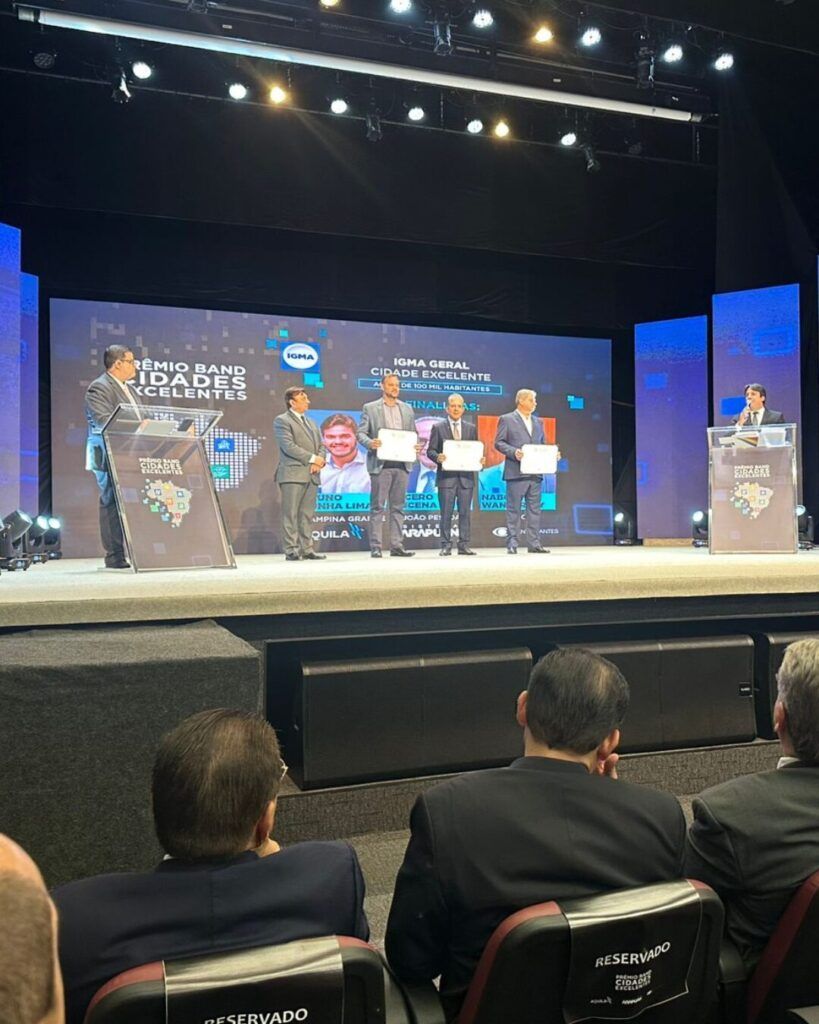 Campina Grande ganhou mais um prêmio de destaque na noite desta sexta-feira, 31. Numa cerimônia fechada para convidados, que reuniu as principais autoridades do Estado, gestores públicos, jornalistas e representantes das prefeituras finalistas em João Pessoa, a cidade despontou como a campeã estadual do Prêmio Band Cidades Excelentes 2025. A premiação tem por base um levantamento criterioso feito pelo renomado Instituto Áquila em parceria com um dos maiores grupos de comunicação do Brasil.