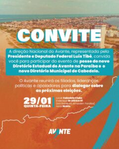 O evento também marcará uma importante “virada de chave” para a legenda na Paraíba, com a oficialização da nova condução estadual do partido, reafirmando o compromisso do Avante com a renovação política e a atração de novos quadros em estados estratégicos do Nordeste.