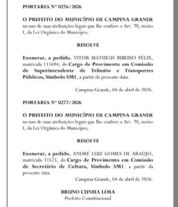 A edição do Semanário Oficial do município publicada neste domingo, trouxe as exonerações de dois auxiliares de primeiro escalão de Bruno Cunha Lima.