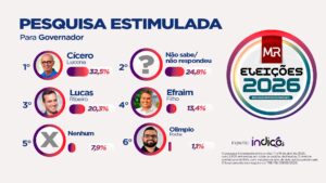 Os números indicam que, mesmo com a liderança de Cícero Lucena, o cenário segue competitivo, especialmente com a presença de Lucas Ribeiro na segunda colocação e Efraim Filho consolidando uma terceira posição.