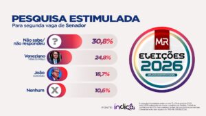 Neste cenário, Veneziano aparece com desempenho mais competitivo, enquanto ainda há um volume expressivo de eleitores indecisos.