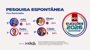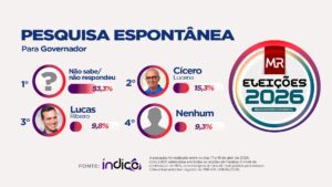 De acordo com os dados da pesquisa espontânea — quando o eleitor responde livremente, sem a apresentação de nomes — 53,3% dos entrevistados afirmaram não saber ou não responderam em quem votariam para governador.